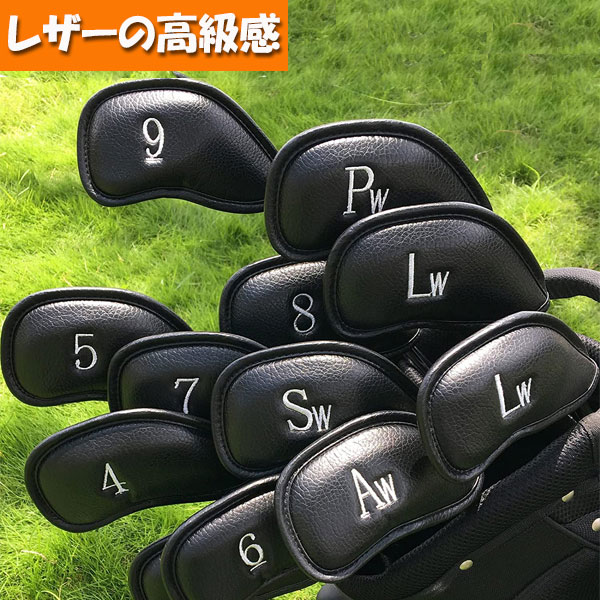 アイアンカバー レザー セット ゴルフ ヘッドカバー ウェッジ 番手表示 防水 保護