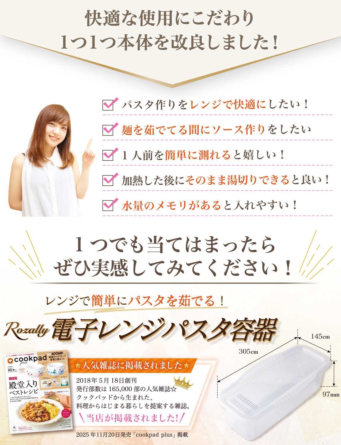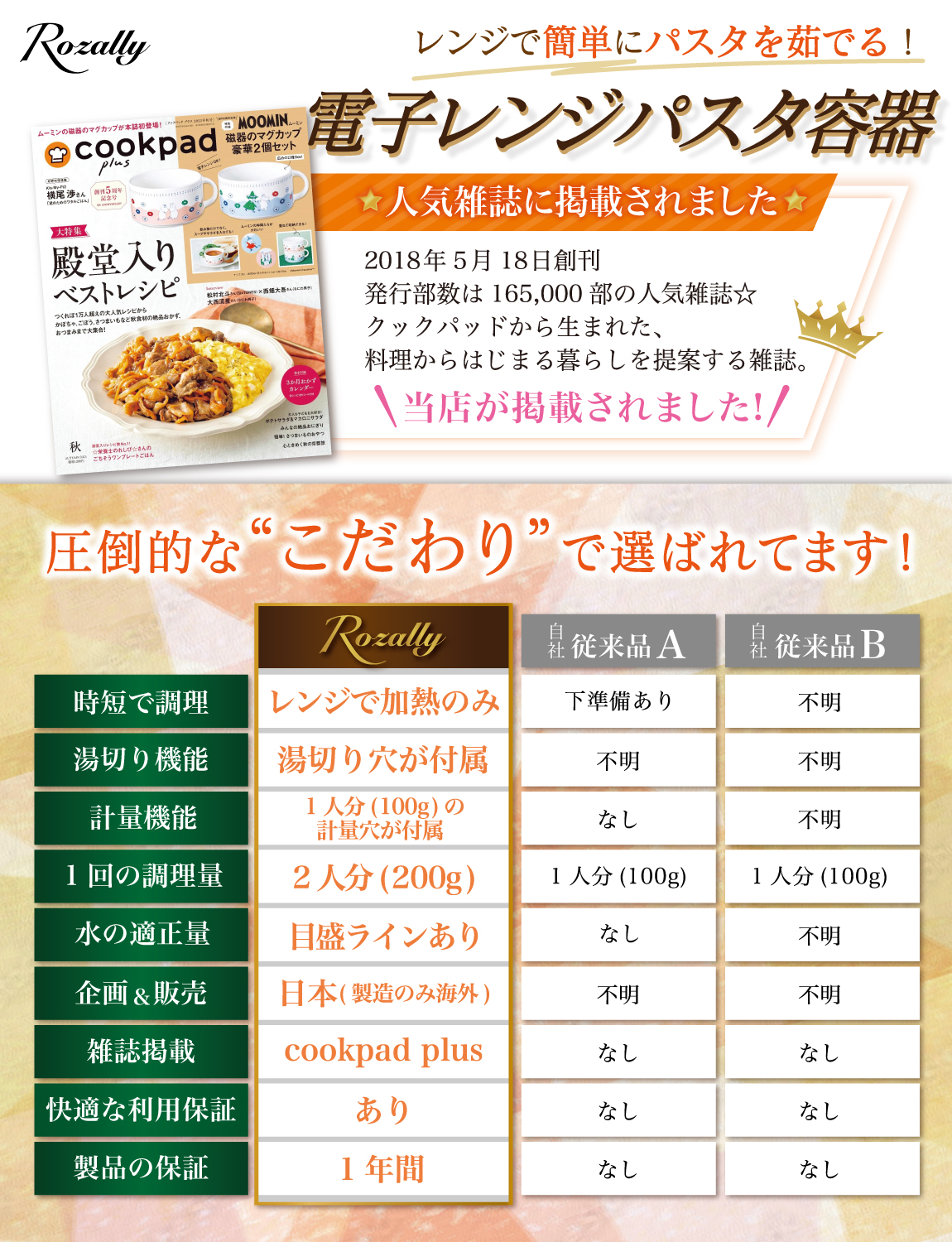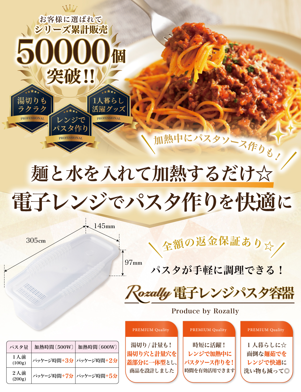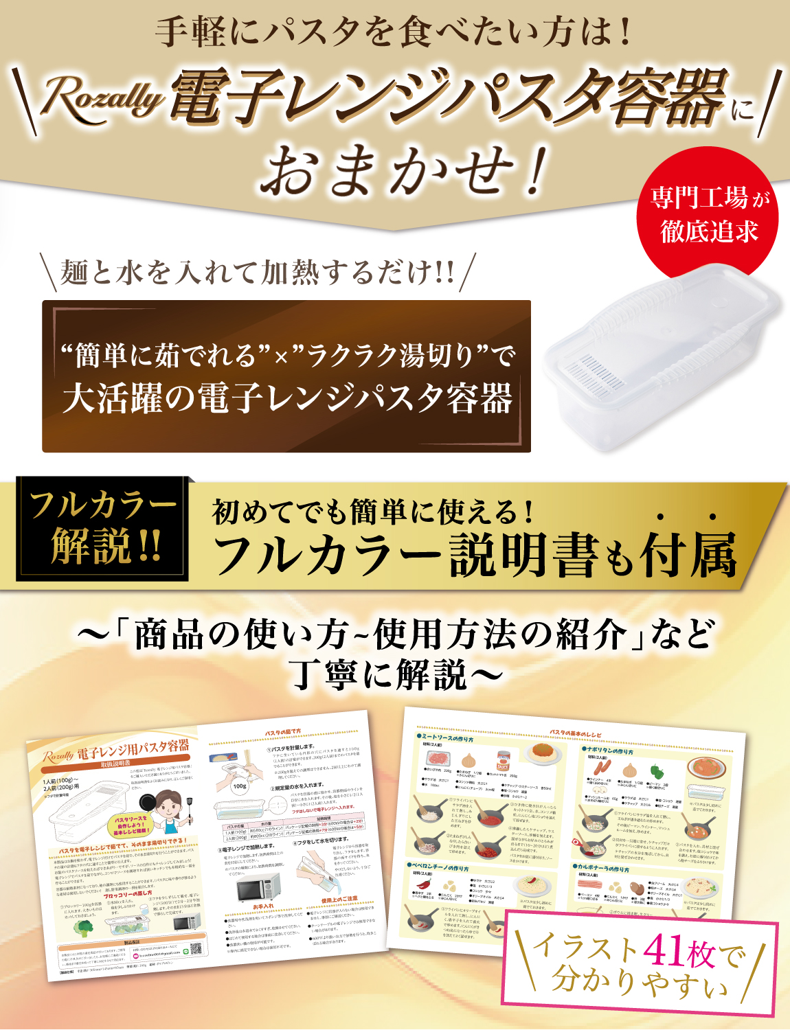 Rozally 電子レンジパスタ容器 ( 電子レンジパスタ ) がついに正式販売開始。