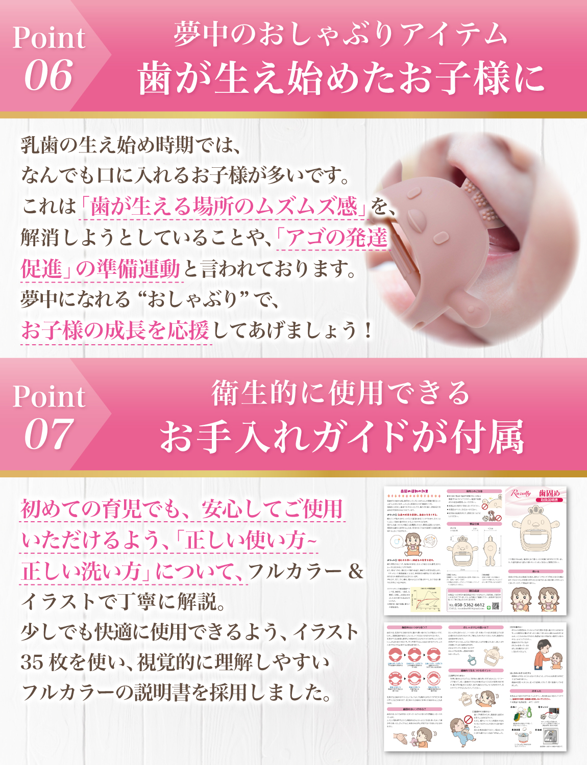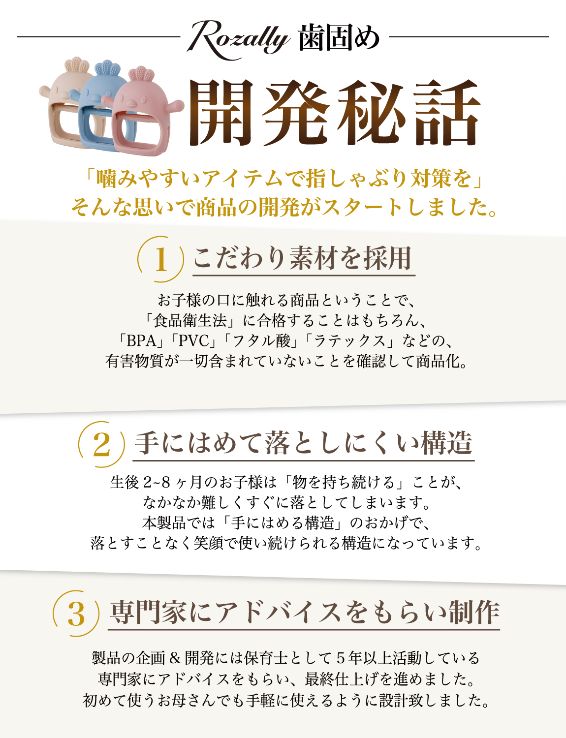 2ヶ月3ヶ月 で迎え 1歳 くらいまで続く” 指しゃぶり “の時期に活躍する 歯固め 。