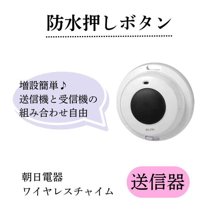【検索ワード】【朝日電器】【送信器】ワイヤレスチャイム 防水押しボタン EWS-P32 設置 簡単 送信器 受信器 LED 電波 120m 生活支援 呼び出し機 介護 介助 看護 985135