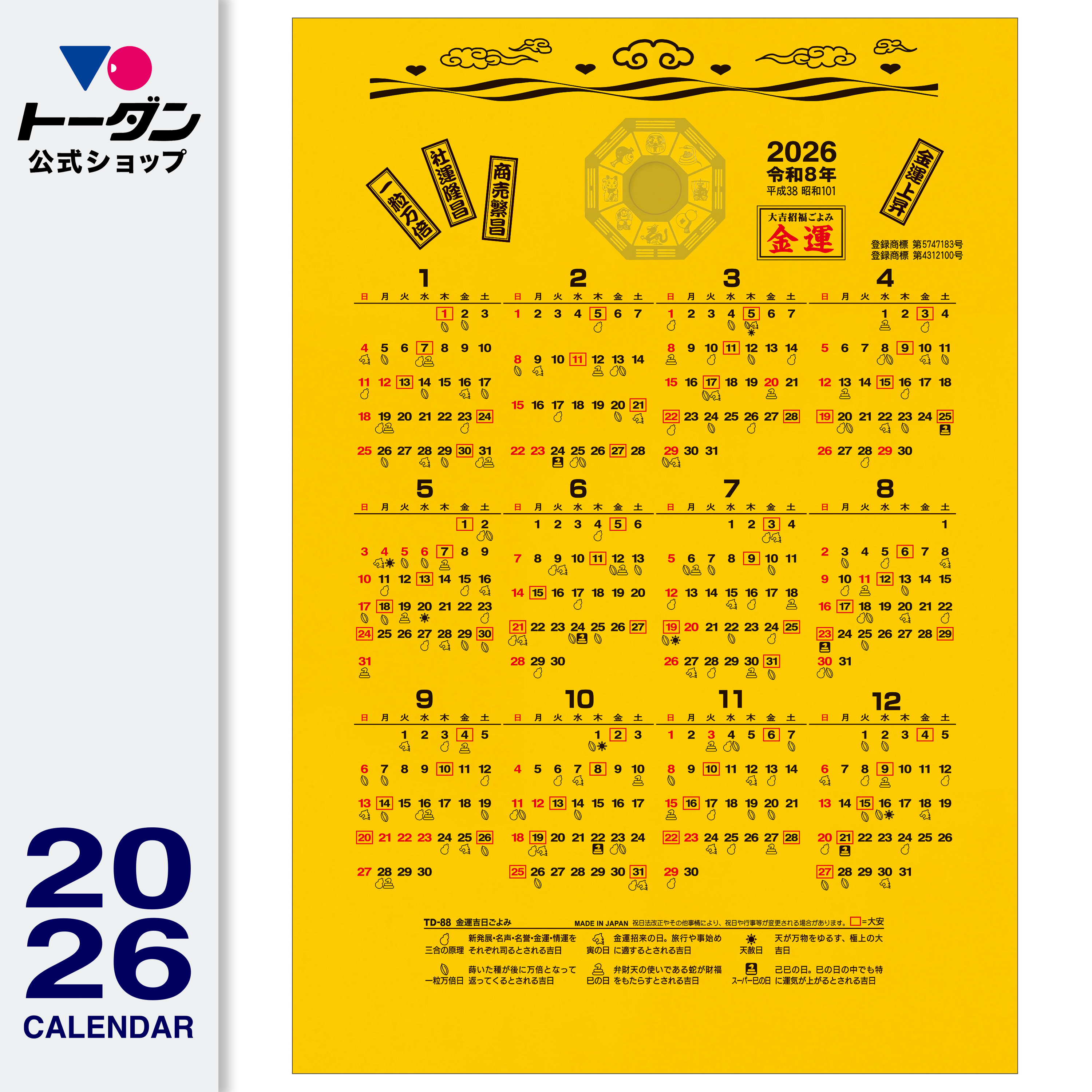 2026年 年間カレンダー 金運吉日ごよみ 17.9 x 12.3cm TD-88 / 運勢・開運・縁起物 / トーダン