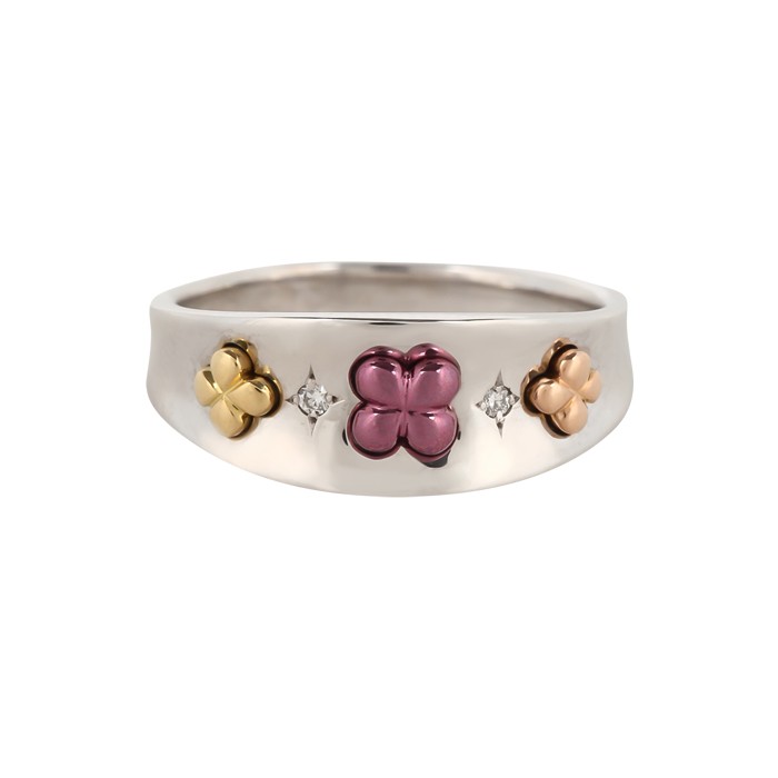 ●素材:PT900/K18パープルゴールド/K18PG/K18YG/天然ダイヤモンド使用 2石合計0.02ct