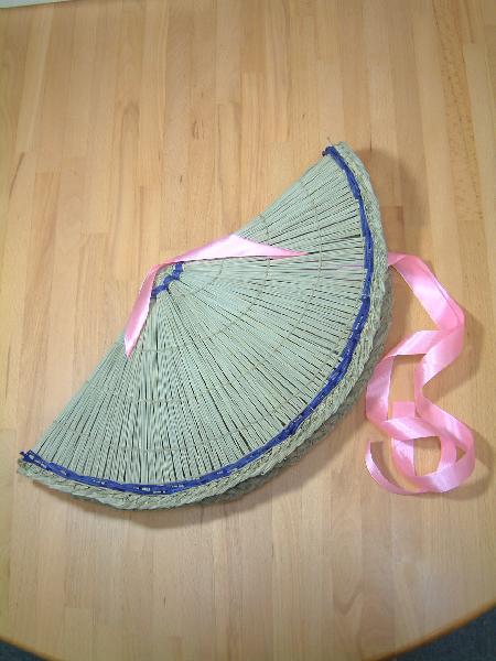 頭頂部周辺と縁(ふち)には、紫に染めた【い草】にてライン入りとなります。
