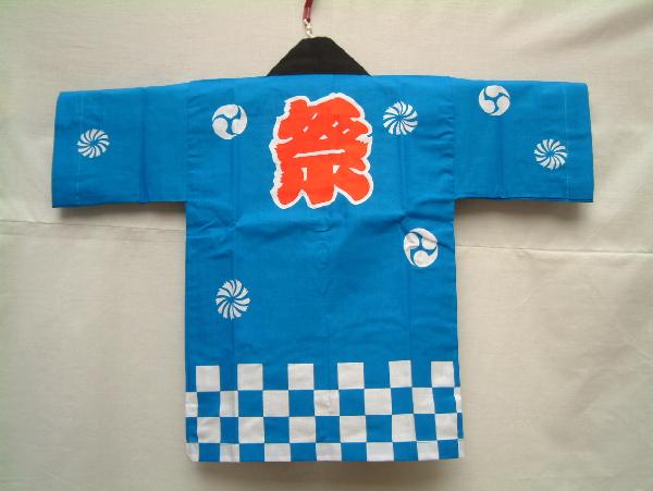 法被 子供用 祭り ハッピ 青 140cm 10〜12才前後 手拭い・帯付き 袢天 袢纏