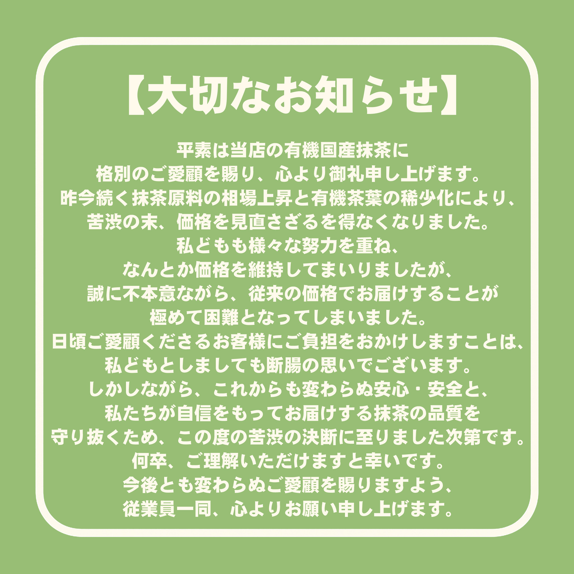 有機栽培の国産碾茶のみを使用。