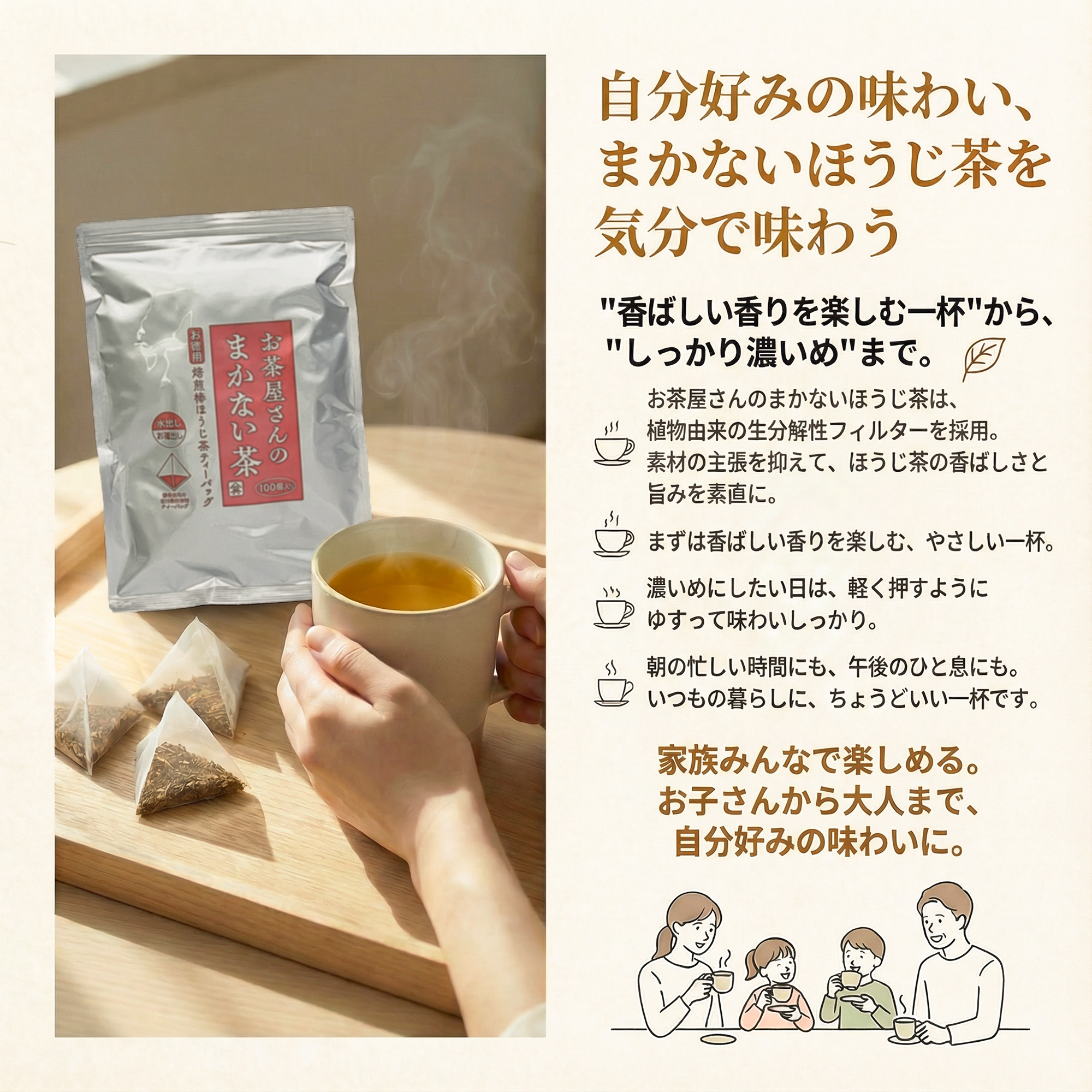 苦み渋味が少なく、小さいお子様もおいしくいただけるお茶です。