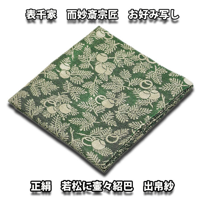 (茶道具 袱紗) 表千家 而妙斎宗匠 お好み 若松に壺々紹巴 出帛紗 緑色系