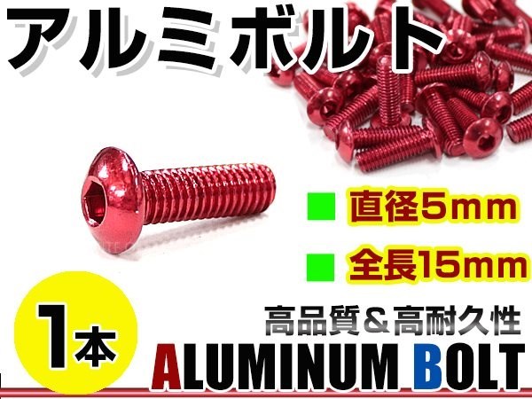 メール便!汎用 カラー アルミボルト M5×15mm 六角 トラスボルト赤/レッド 1本 スクリーン/アッパーカウル/パネル/メーター/タンクキャップ等