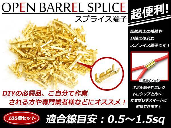 メール便 配線接続 スプライス端子 圧着端子 0.5sq-1.5sq 結線 ターミナル オープンバレル クイック端子 配線作業に便利! 100個売り