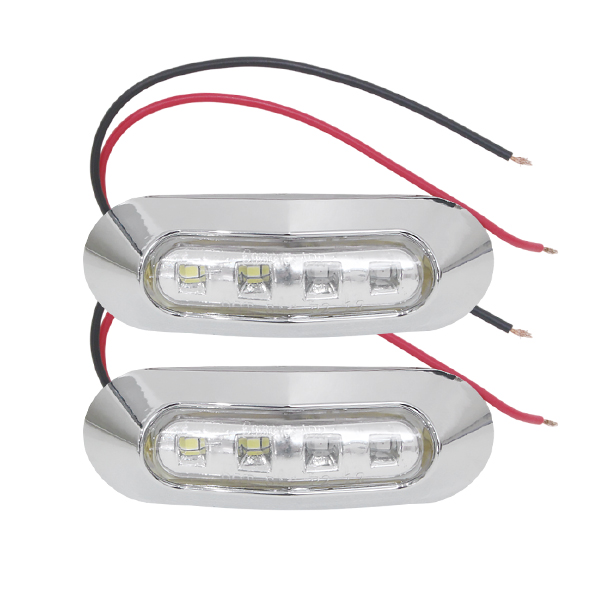 メッキカバー付 SMD 4連 LEDマーカー LEDマーカーランプ 12V 24V 対応 クリアレンズ 発光色レッド&ホワイト 2個