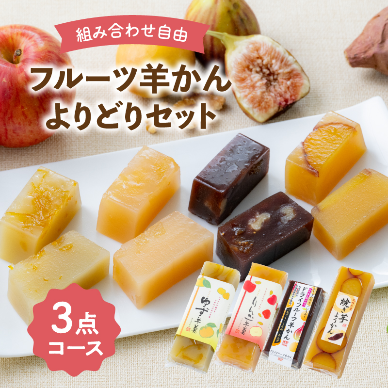ギフト プレゼント フルーツ 羊かん 3点 選べる 羊羹 ゆず りんご ドライフルーツ 焼き芋 和菓子 スイーツ 贈り物 手土産