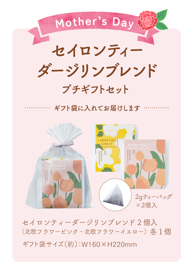 母の日 ギフト プレゼント 2026 紅茶 ティーバッグ 水出し プチギフト ダージリン セイロン お茶 セイロンティーダージリンブレンド 2個入×2 送料無料