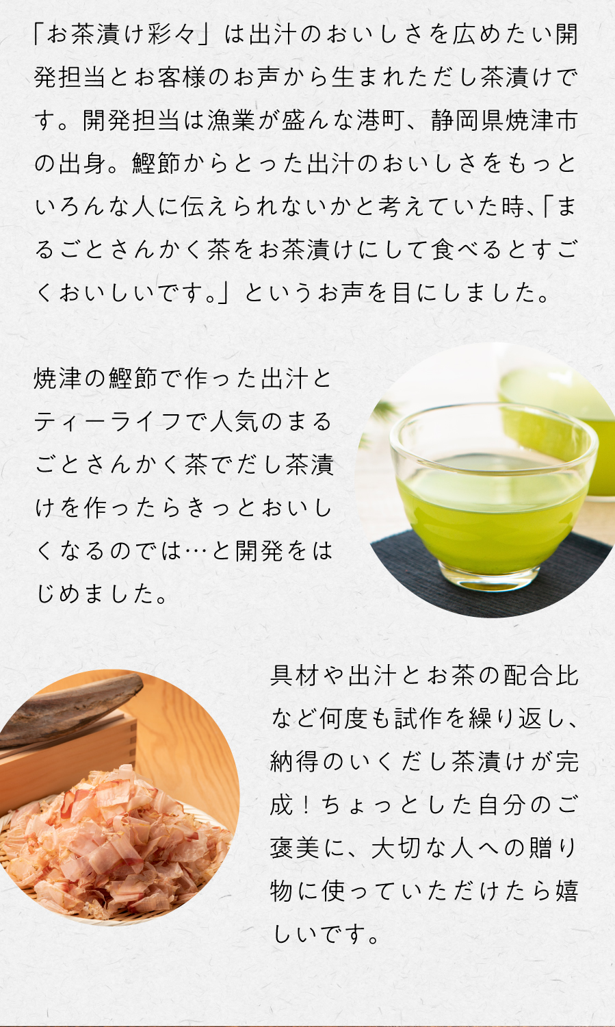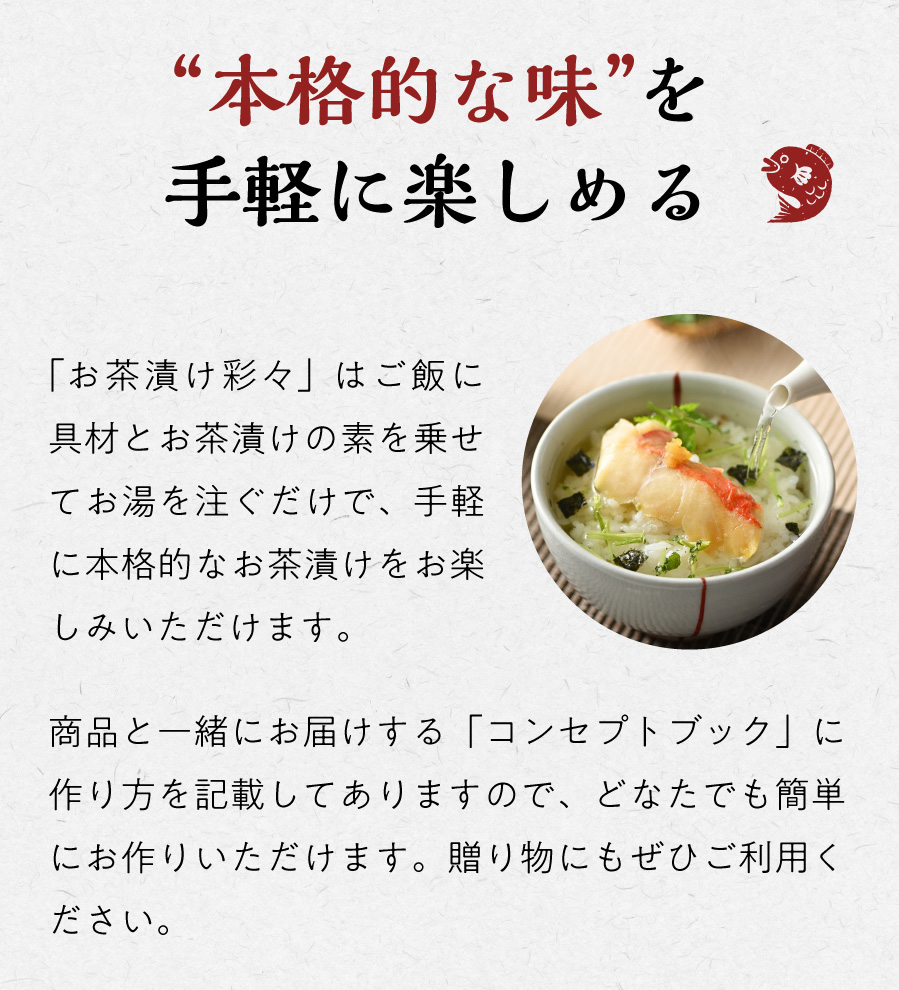 お茶漬け彩々 贅沢 厳選 国産素材 お茶漬け ゆず金目鯛 鰻山椒 金華鯖 銀鮭 鯛 タイ 鰻 うなぎ 鯖 サバ 鮭 サケ 保存料不使用 化学調味料不使用 静岡 お茶屋 焼津市 老舗 鰹節屋 出汁 鰹節 焼きあご煮干し さば節 昆布 緑茶 深蒸し茶 抹茶 煎り米 冷やし茶漬け 夏 食欲 夏バテ 手軽 専用 ギフトボックス 熨斗 高級食品 お取り寄せ 送料無料 ティーライフ