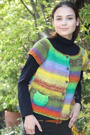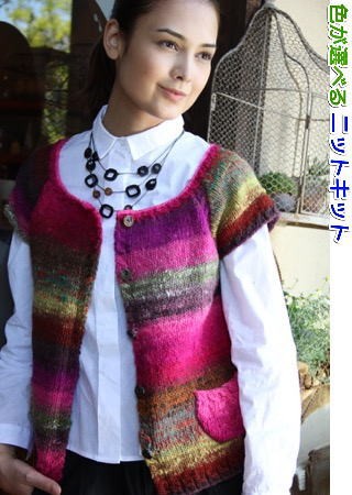野呂英作の人気毛糸・くれよんで編む飾りポケットが可愛いキャップスリーブのカーディガンのニットキット(編み物キット)