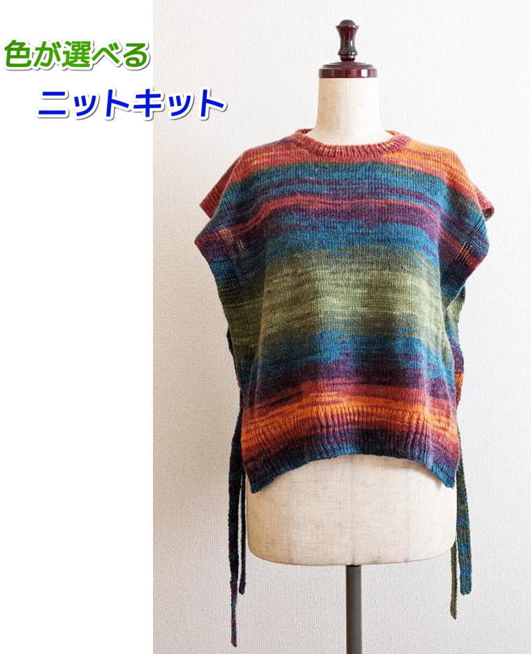 ●編み針セット アンゴラゴールドバティックで編むサイドリボンのベスト 毛糸 編みものキット