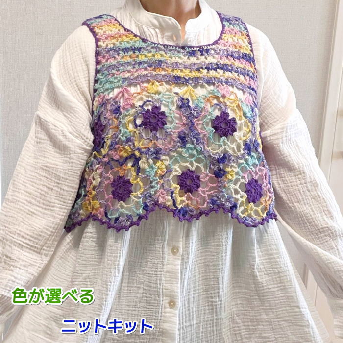 ●編み針セット スーパーウォッシュ アルチザンを2色使って編むモチーフ編みが可愛いベスト 毛糸 編みものキット アリゼ