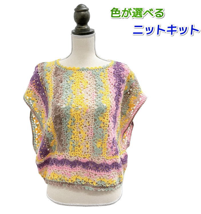 ●編み針セット 毛糸 アンゴラゴールドバティックで編むサイドオープンのベスト 編み物キット