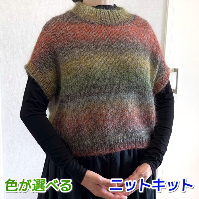 毛糸 ソノモノヘアリーと段染めモヘアで編む2本どりのゆったりプルオーバー セット 編み物キット ベスト