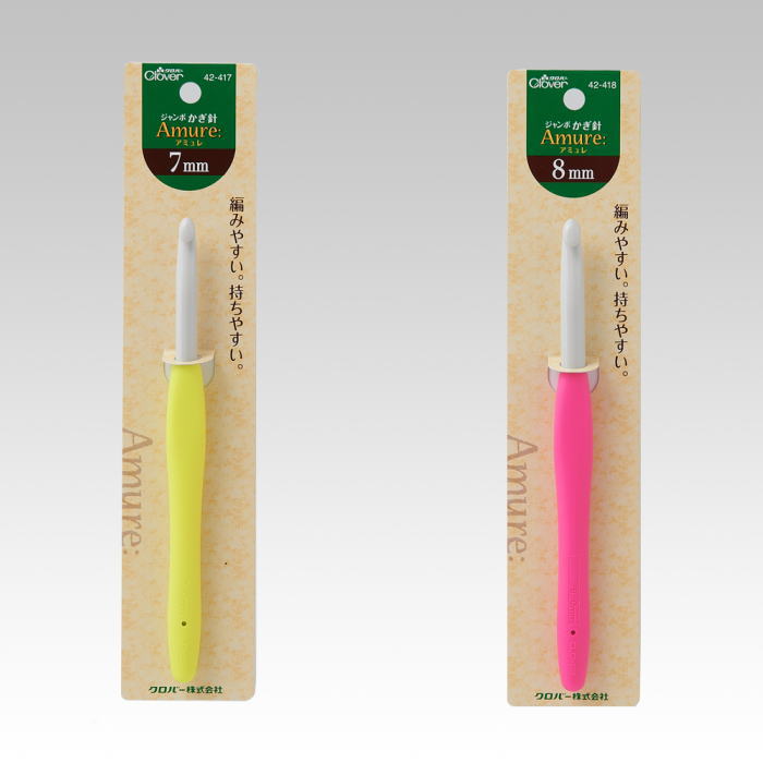 ペンタイプのかぎ針・カラフルなシリーズ 「アミュレ」のジャンボ針の7ミリと8ミリ
