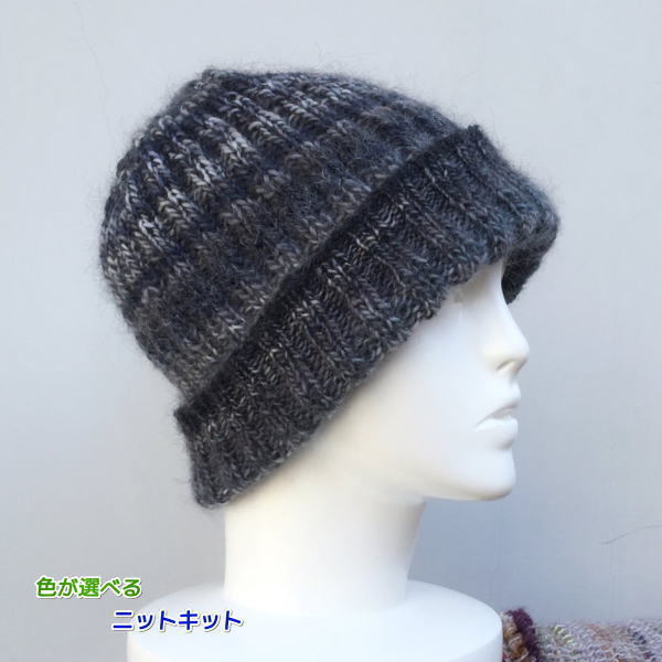男性用にもOK! モヘア混であったかいドミナで編む帽子のニットキット(編みものキット)