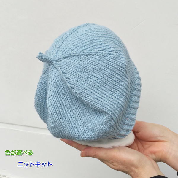 春夏毛糸 3〜4歳用! オーガニックコットン100%のポームベビーカラーで編むベレー帽 子供 セット 夏糸