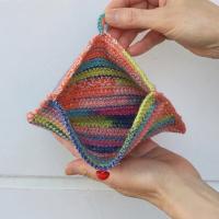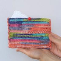 可愛くてカラフルな人気の段染め毛糸・ナイフメーラで編む小物入れのニットキット(編み物キット)