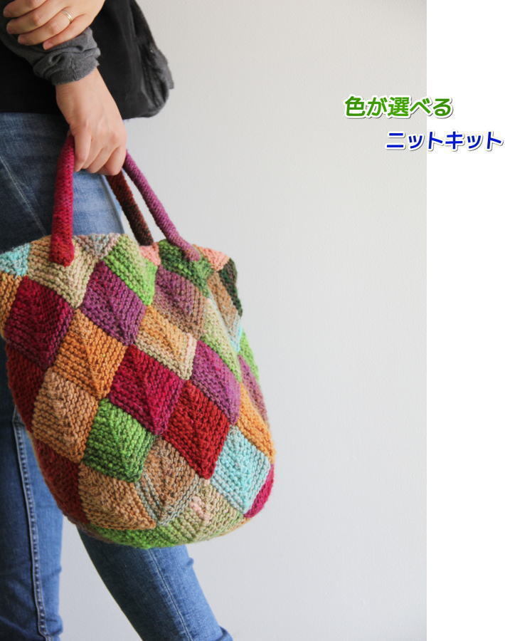●編み針セット 野呂英作のくれよんで編むドミノ編みのバッグ 手編みキット 無料編み図 編みものキット 毛糸