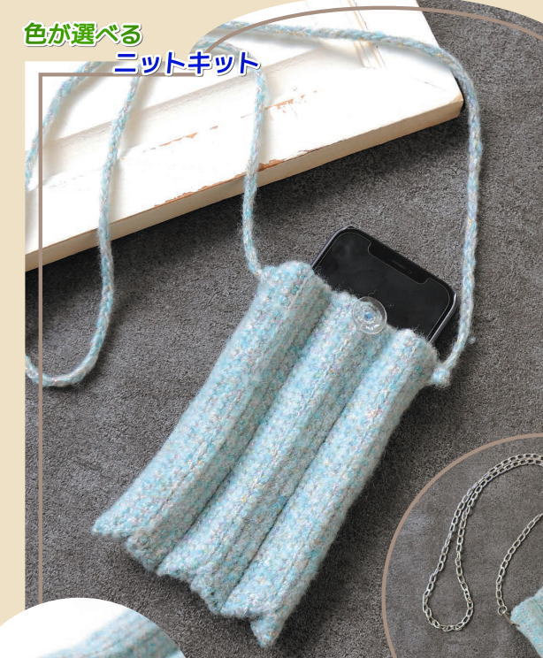 ジンニーヤで編むプリーツサコッシュ スマホケース ポシェット ハマナカ・リッチモア 手編みキット 毛糸 無料編み図 編みものキット バッグ