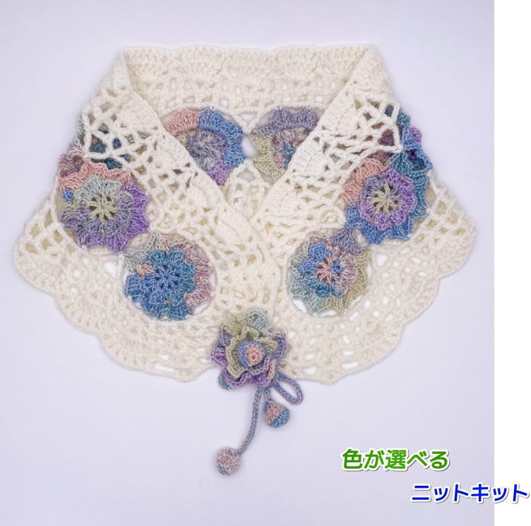 ●編み針セット ナイフメーラとエブリディソリッドで編む花モチーフのミニマフラー 手編みキット 毛糸 無料編み図 編みものキット
