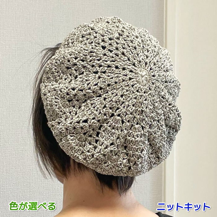 コットン100%のドラマ―ルで編む帽子のニットキット(手編みキット)