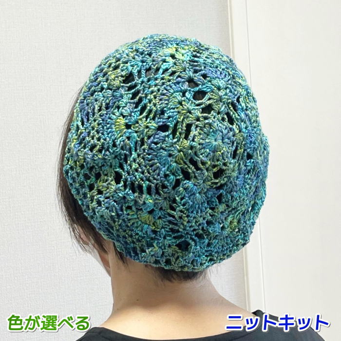 コットン100%のメヒコで編むパイナップル模様のベレー帽のニットキット(編み物キット)