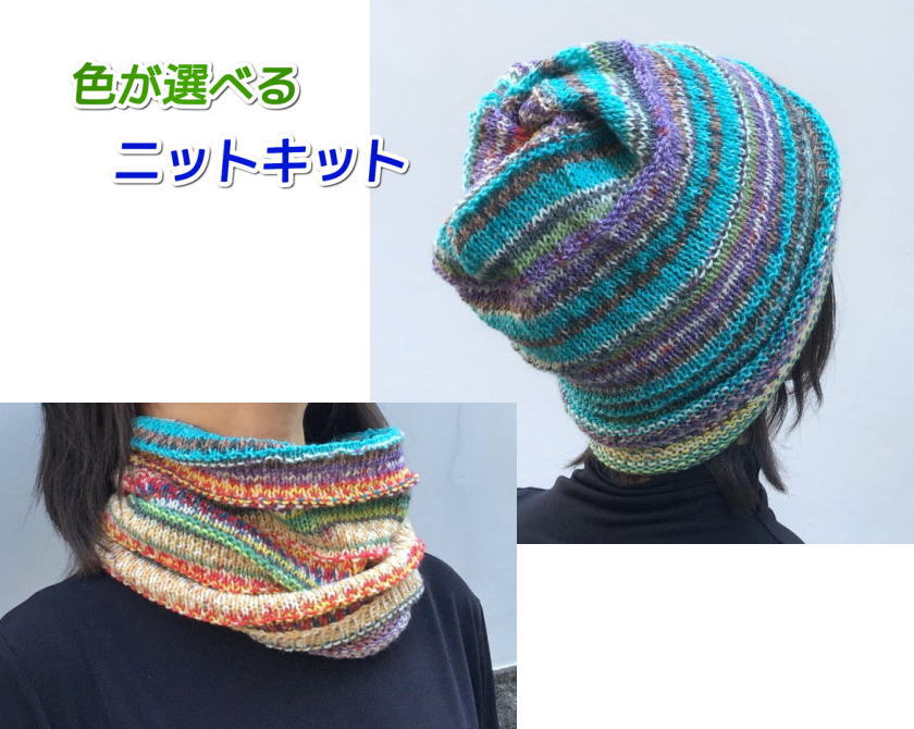 人気の毛糸・オパールで編むねじり帽子&スヌードのニットキット(編み物キット)