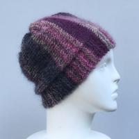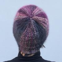段染め毛糸を横編みで編むから、ニュアンスの変わった帽子が完成します