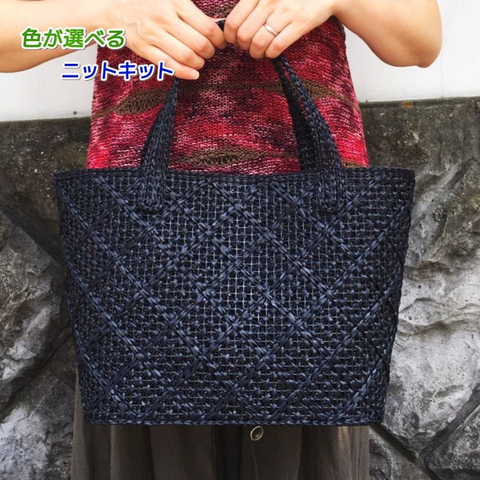 ●編み針セット エコアンダリヤで編むマチたっぷりのダイヤ柄のバッグ 編み物キット 無料編み図