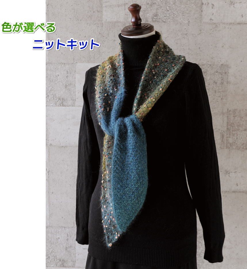 ランタンモールと綺麗色段染めモヘア・エクセレントモヘアカウント10グラデーションで編む斜め編みのショールのニットキット(編みものキット)