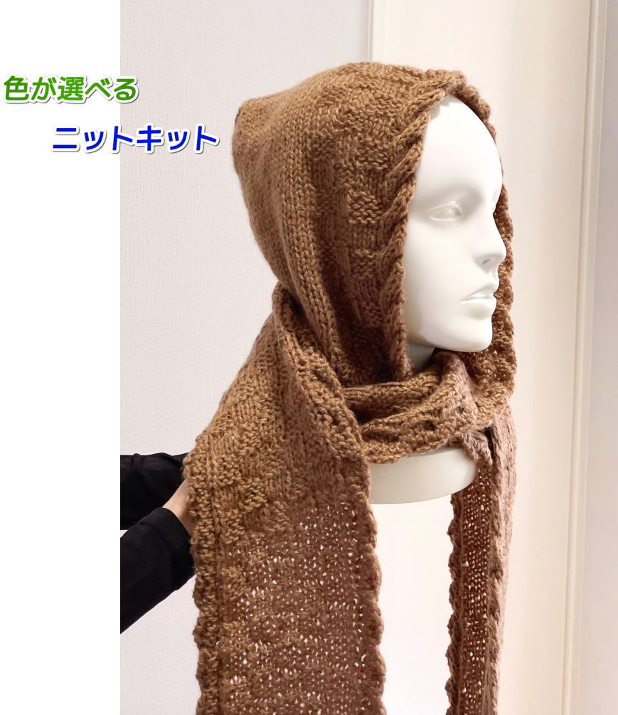 アンゴラゴールドで編むフード付きマフラーのニットキット(編みものキット)