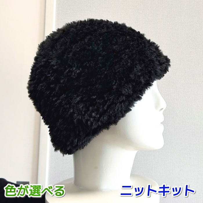 フェイクファーの毛糸・テディで編む帽子のニットキット(編みものキット)