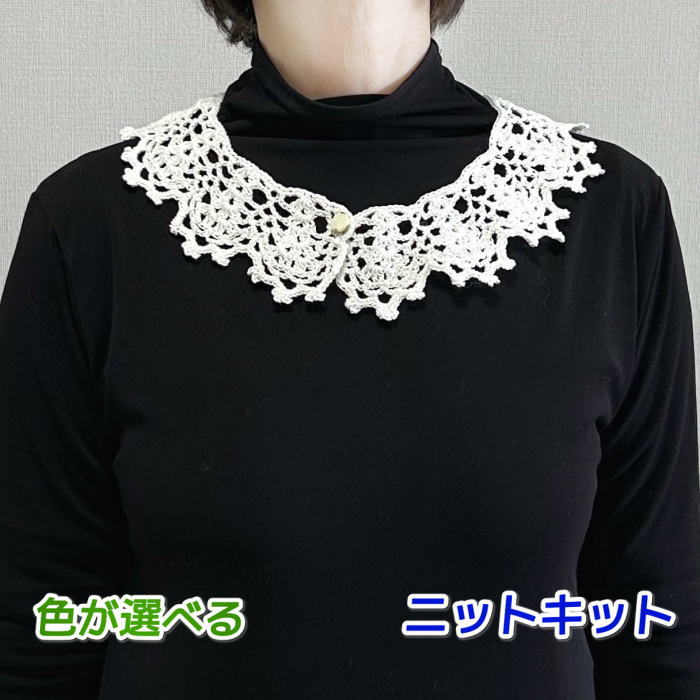 ウォッシャブルが嬉しいウォッシュコットンクロッシェで編むつけ襟のニットキット(編み物キット)