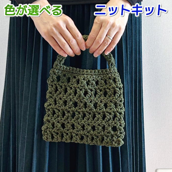 ●編み針セット 春夏毛糸 ロビンで編むクロス編みのミニバッグ 無料編み図 編み物キット
