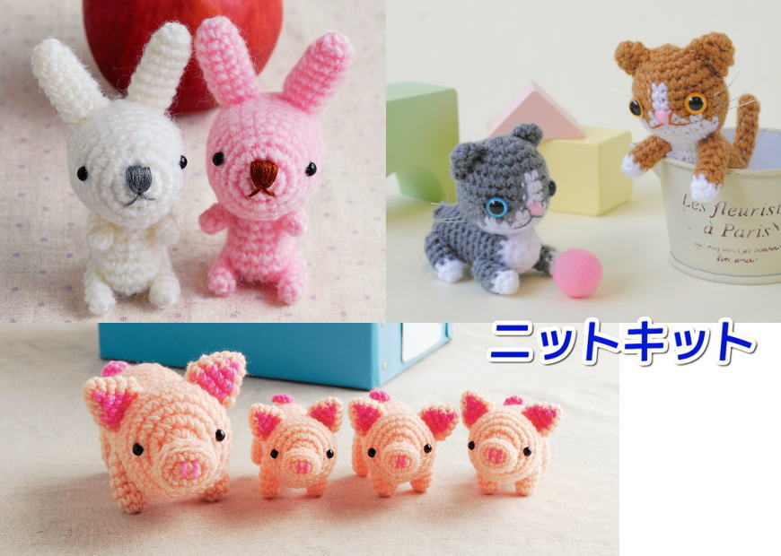 ■キット内容:着分毛糸、プラスチックアイ、ネオクリーンわたわた、テグス、レシピ