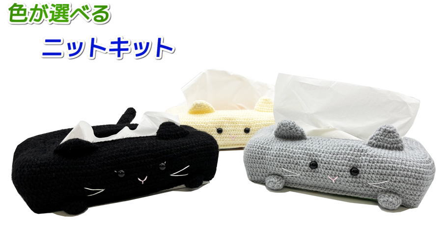 アンゴラゴールドで編むねこのティッシュボックスカバーのニットキット(編みものキット)