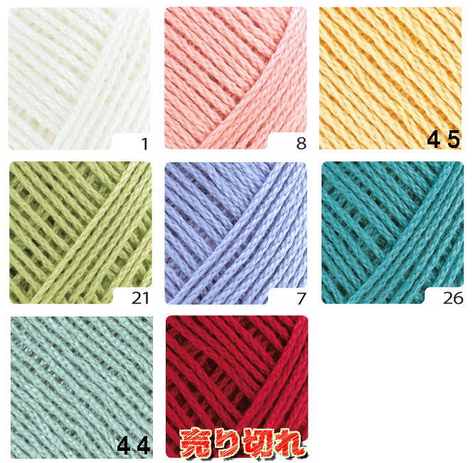 ■使用毛糸:ハマナカ:ウォッシュコットン(綿64%ポリエステル36%)3色3玉