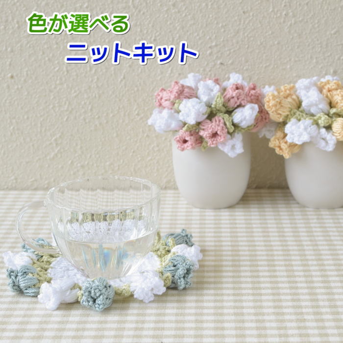 ●編み針セット 春夏毛糸 ウォッシュコットンで編むブーケにもなるお花のコースター 編み物 キット 夏糸