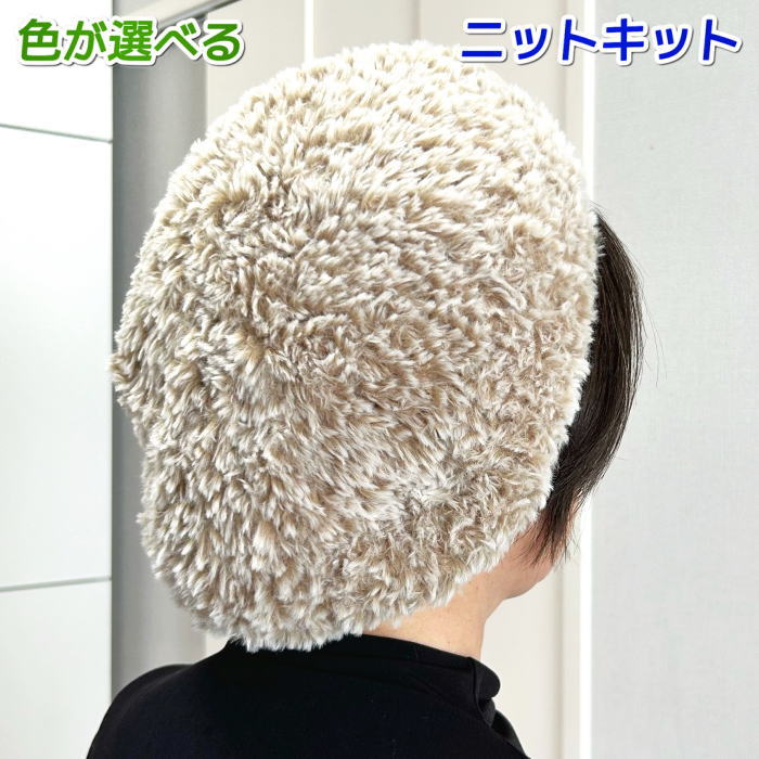 フェイクファーの毛糸・テディで編むベレー帽のニットキット(編みものキット)