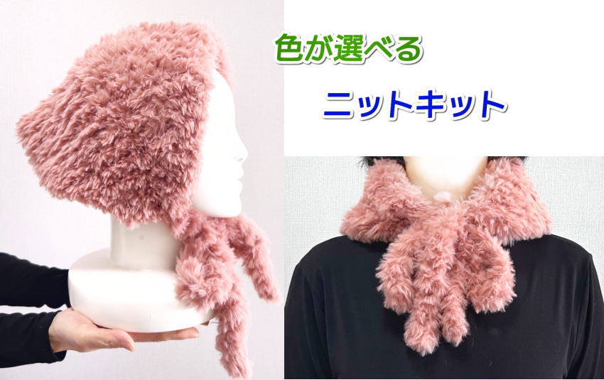 フェイクファーの毛糸・テディで編むあったかつけ襟のニットキット(編みものキット)