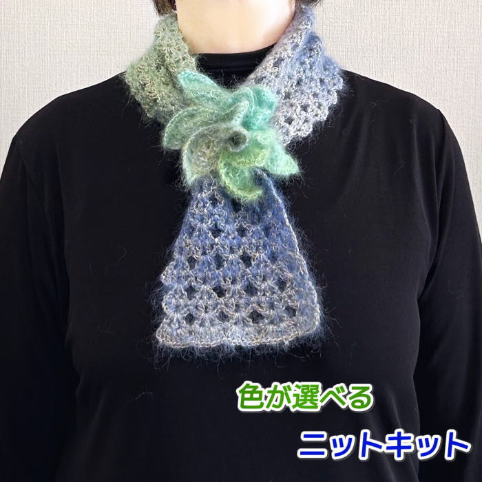 エクセレントモヘアカウント10グラデーションで編むお花のプチマフラーのニットキット(編みものキット)