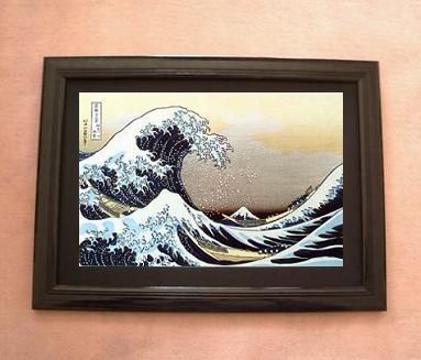 復刻版・葛飾北斎「富嶽三十六景・神奈川沖浪裏(Big Wave)」 (日本製)黒額縁付 〜浮世絵・正月