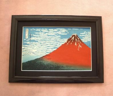 復刻版・葛飾北斎「富嶽三十六景・赤冨士」 (日本製)黒額縁付 〜浮世絵・正月