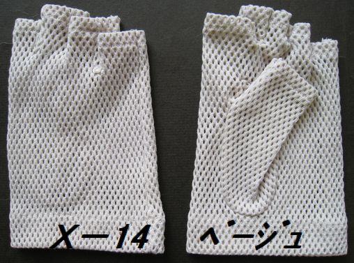 メッシュ生地の手袋14cmショート丈指切タイプです。