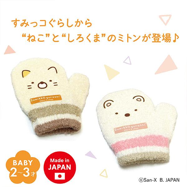 ベビーすみっコぐらし のびミトン 手袋 ニット すみっコ しろくま ねこ サンエックス 洗える 日本製